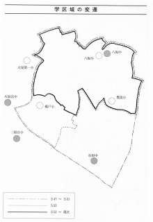 図にあるように、学区域がだんだん小さくなってきました。