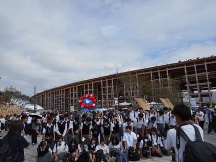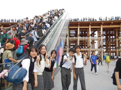 どのパビリオンも長蛇の列でしたが、一生の思い出になったことでしょう。 上:東ゲートのミャクミャク。 中:西ゲートのミャクミャクの前でクラス写真。 下:インドのパビリオンの一場面。 ![]() ![]() ![]() ![]() ![]() ![]() 修学旅行 1日目