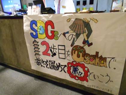 上:万博会場から電車で1時間以上かけて、宿舎に着いたのは19時前でした。 中:チェックを受けてこれから夕食です。 下:フロントには学校から運んだスローガンが貼ってあります。 ![]() ![]() ![]() ![]() ![]() ![]() 修学旅行 1日目