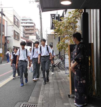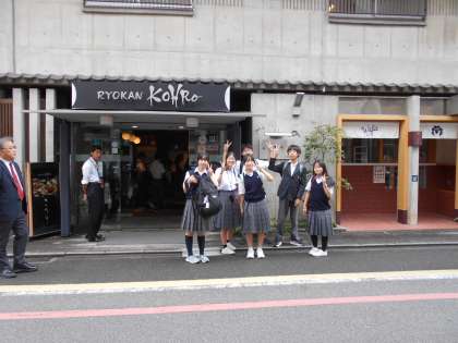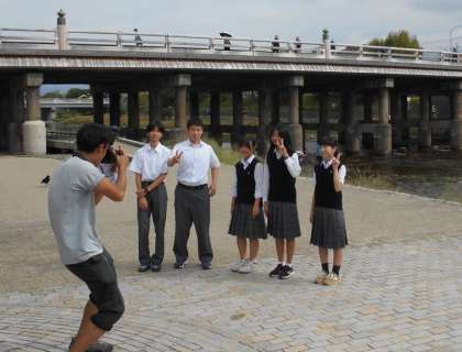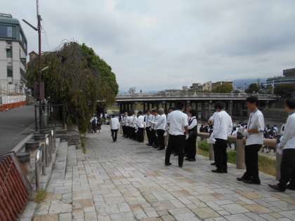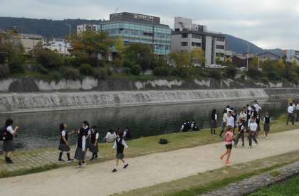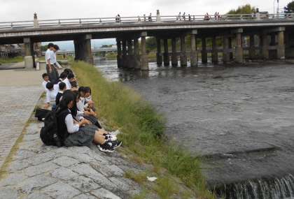 中:10分ほど歩いて移動です。 下:鴨川に到着しました。ここでタクシーの運転手さんと待ち合わせです。 ![]() ![]() ![]() ![]() ![]() ![]() 修学旅行 2日目 体験学習