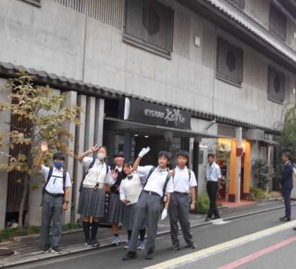 夢洲駅から京都の宿舎までは電車を乗り継ぐ班行動。初めての土地でしたが問題なく帰着しました。