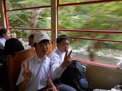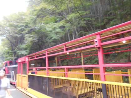 トロッコ列車の様子です。座席指定なので観光地ではありますが、人込みは感じません。さわやかな風が気持ちいいです。