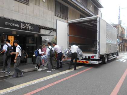 明日が祝日のため、2日前ですが荷物の搬出です。トラックが京都に向けて出発しました。