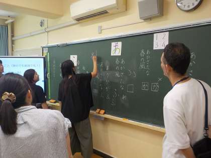 ネット型ゲーム![]() ![]() ![]() ![]() ![]() ![]() 図工の作品づくり![]() ![]() ![]() ![]() ![]() ![]() からだつくり運動![]() ![]() ![]() ![]() ![]() ![]() 座談会![]() ![]() ![]() ![]() ![]() ![]() 話題となった板書のしかたについては、実際に板書を練習してみました。 不審者対応訓練![]() ![]() ![]() ![]() ![]() ![]() 児童が安全に生活するために、そして楽しく学ぶために、先生方も学んでいます。 さすまたの使い方について 不審者対応シュミレーション 防犯ボールの使い方 7/17(木)の給食![]() ![]() ○夏野菜のカレーライス ○ゆで枝豆 ○フルーツパンチ ○牛乳 今日の夏野菜のカレーには、夏野菜であるピーマン、かぼちゃ、ナス、トマトを使っています。 夏野菜は、いろどりがよく、暑い時期、疲れやすくなりがちな体を元気にする栄養がたくさん入っています。 また、カレーライスに欠かせないごはんは、「熱や力のもと」になる食品で、元気に勉強したり、運動したりするエネルギーとなります。 夏休みの間も、規則正しい生活と、バランスの良い食事を心がけ、元気に過ごしてください。9月に元気なみんなに会えるのを楽しみにしています。 7/16(水)の給食![]() ![]() ○マーボーなす丼 ○冬瓜スープ ○牛乳 みなさん、冬瓜という野菜を知っていますか?冬瓜は、きゅうりやスイカと同じ瓜科の植物です。大きさは大きいものだと10kg以上になります。 漢字で「冬の瓜」と書きますが、実は夏が旬の野菜です。 ではなぜ、冬という字が入っているのかというと、実は、冬瓜は夏に収穫しても、切らずに丸ごとおいておけば、冬まで保つことから、冬瓜と呼ばれるようになったそうです。 夏が旬の冬瓜、ぜひ食べてください。 7/15(火)の給食![]() ![]() ○豚肉とごぼうごはん ○ししゃものサクサク揚げ ○五目みそ汁 ○牛乳 『まごわやさしい』とは、バランスの良い食事をするために取り入れたい食材の7品目の頭文字からできた食育ワードです。 それぞれ、ま:豆 ご:ごま わ:わかめ(海藻類) や:野菜 さ:魚 し:しいたけ(きのこ) い:芋 のことで、この7品目を毎日の食事に取り入れる事を心がければ、栄養バランスの摂れた食生活が送れ、健康の保持・増進や生活習慣病の発症予防・重症化予防などに役立つとされています。 7/14(月)の給食![]() ![]() ○ツナトースト ○小松菜ときのこのガーリック ソテー ○ラタトゥユスープ ○牛乳 南フランスが発祥のラタトゥユは、野菜を煮込んで作るトマトベースの料理です。 ズッキーニや玉ねぎ、なすなどの数種類の野菜を、スライスしてトマトや、香草と一緒にオリーブオイルで炒め煮にし、塩こしょうで味付けした料理です。 フランス語で「トゥイエ(touiller)」は「混ぜる」という意味があるそうで、かき混ぜながら炒め煮にしていくのがラタトゥイユです。 夏の野菜がたっぷり食べられるラタトゥユのスープです。 7/11(金)の給食![]() ![]() ○ごはん ○いわしのさんが焼き ○大豆とポテトの磯辺揚げ ○せんべい汁 ○牛乳 今日は、「練馬産じゃがいもの日」です。じゃがいもと大豆を油でカリっとあげて塩と青のりをまぶしました。 いわしのさんが焼きは、千葉県の郷土料理です。「さんが焼き」とは、あじやいわしなどの魚にねぎやみそを入れてよくたたき、貝のカラにつめて焼いた料理です。もともとは、漁師の人たちが作っていた料理です。今日はいわしを使って作りました。 旬の味覚をぜひ味わって食べてください。 7/10(木)の給食![]() ![]() ○ごはん ○畑のお肉甘辛揚げ ○野菜とちくわの炒め物 ○じゃが芋と玉ねぎのみそ汁 ○牛乳 畑のお肉とは、大豆ミートという、主に油分を絞った大豆に熱や圧力を加えて乾燥させることで、お肉のように見立てた加工食品を使った料理です。 大豆ミートは「ミンチ」や「ブロック」などの形で売られています。 ミンチは、そぼろ状のひき肉タイプです。牛肉や豚肉のひき肉同様に、ハンバーグやミートソース、麻婆豆腐など様々なひき肉料理に使えます。 ブロックタイプの大豆ミートは食べごたえがあり、唐揚げや酢豚に使えます。大豆本来の味をしっかりと感じられるものの、匂いが気になってしまう人もいるようです。その場合は、味の濃い料理に使うとおいしく食べられます。 7/8(火)の給食![]() ![]() ○冷やしきつねうどん ○ちくわのいそべ揚げ ○蒸しとうもろこし ○牛乳 7月になり、練馬区の畑でも、ひげの先が茶色くしおれ、まるまるとふくらんだとうもろこしが収穫の時期を迎えています。採れたてのとうもろこしは、とても甘くておいしいですね。 今日は、そんな練馬区産のとうもろこしを、2年生が皮むきをしてくれました。皮の様子や、ひげの部分をよく観察しながら、1本1本、がんばってむきました。それを給食室で切り分け、蒸したものが、今日のとうもろこしです。 この時期ならではの旬の味をよく味わって食べてくださいね。 7/7(月)の給食![]() ![]() ○夏ちらし ○天の川汁 ○みそどれサラダ ○お星様ゼリー ○牛乳 7月7日は、七夕ですね。給食にも、七夕に