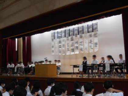 9月2日から生徒会役員選挙の公示が始まり、8日には立候補者一覧が昇降口に掲示されました。9日から放送での選挙演説が始まりました。最初は生徒会長への立候補者からです。学校生活を快適にするための、いくつかの公約が述べられました。これから19日の役員選挙当日まで、選挙活動が行われます。立候補してくれた皆さん、検討を祈っています。