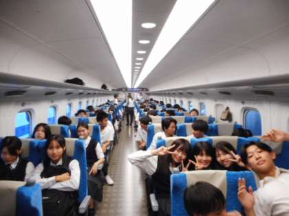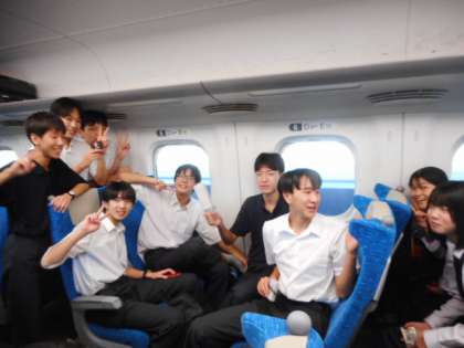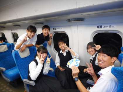修学旅行列車の中では、おしゃべりをしたり、カードゲームをやったり、楽しそうに過ごしていました。