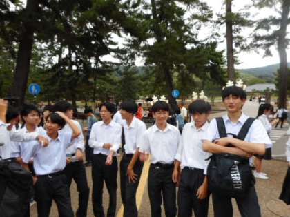 大仏殿の見学を終了して、宿舎へのバスの中では、とても盛り上がっていました。