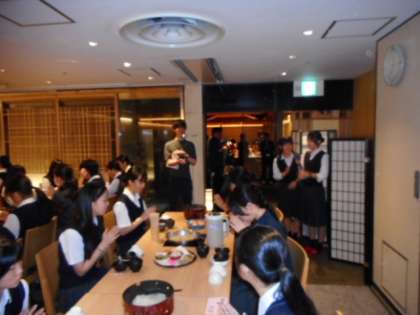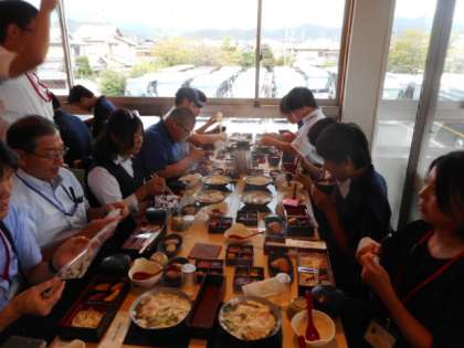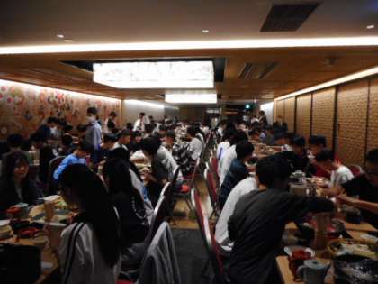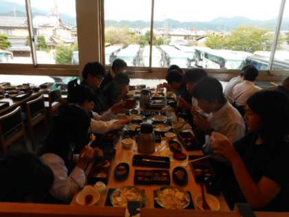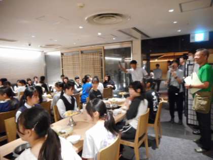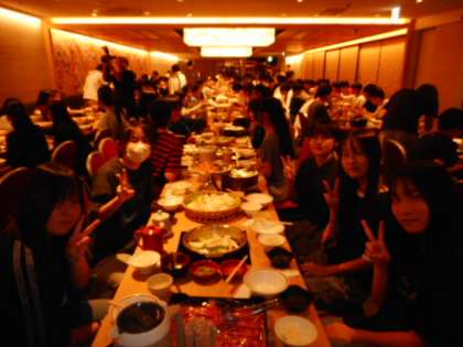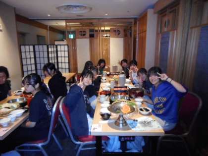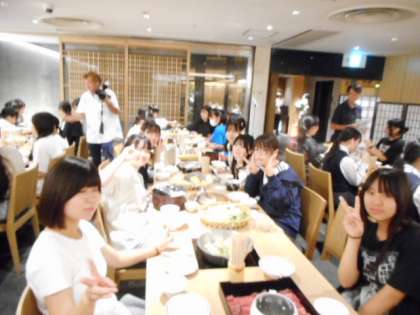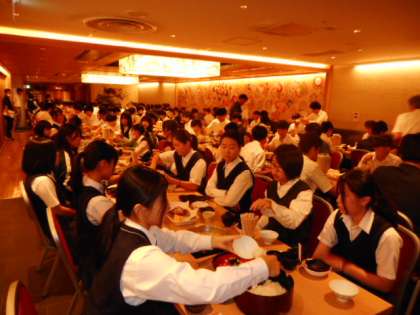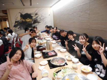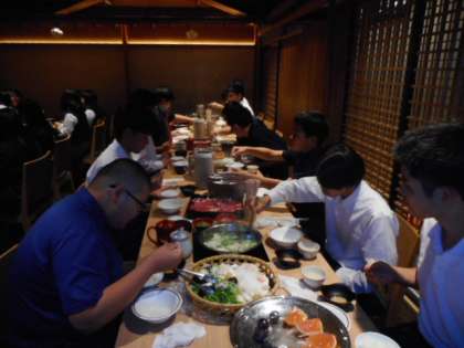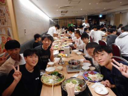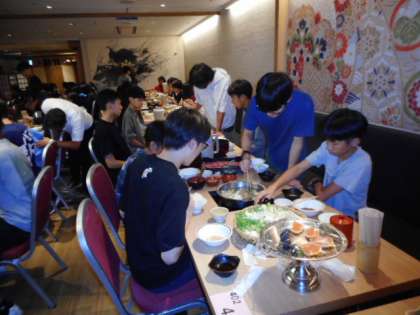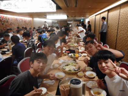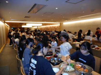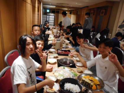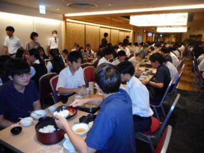 修学旅行最後の夕食は、関西風すき焼きです。今日の暑さにも負けず、みんな元気でもりもり食べています。