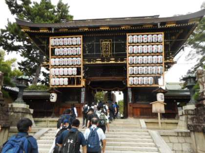 10組はバスでの行動です。まずは北野天満宮に向かいます。