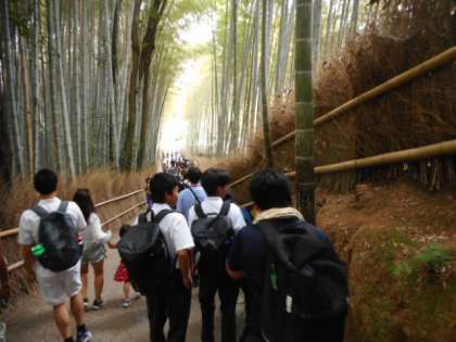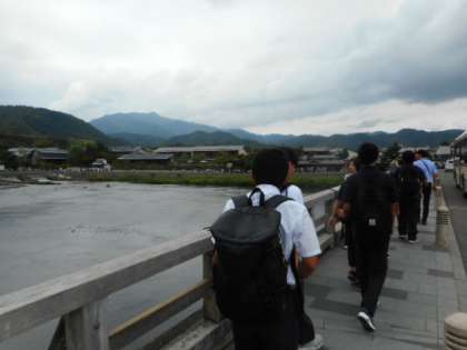 嵐山では、渡月橋や竹林に感動しました。トロッコ列車にも遭遇して、とても喜んでいました。