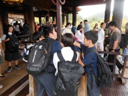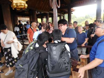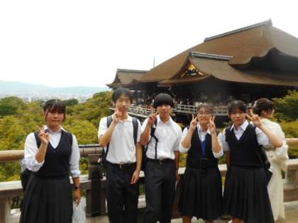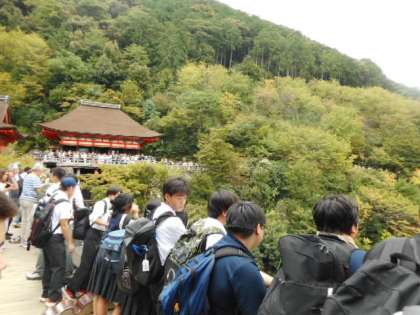 清水寺では、清水の舞台の高さを体感しました。京都タワーもよく見えました。