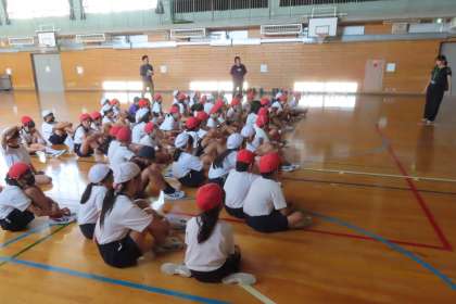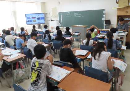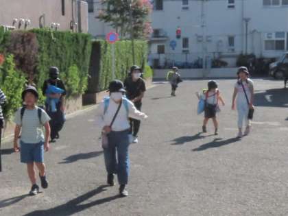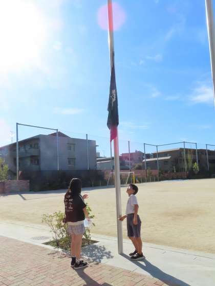 少し暑さが戻った朝。子供たちが笑顔で登校してきました。しっかり挨拶できたかな? 6年生、校旗当番ご苦労様!