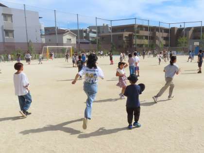 日差しはありますが、風は秋風。走り回って子供たちが遊んでいます!