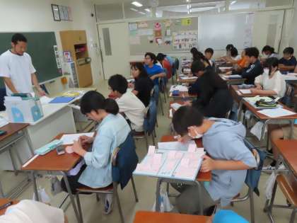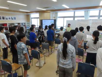 ゲストティーチャー副校長によるオリエンテーション。北海道余市の厳しい荒波、命懸けで自然と戦う漁師の生き様を胸に取り組んでいきます。