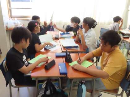月曜日のたてわり班に向けて、グループごとに活動計画の準備をしています。下級生を楽しませるために、さあ、どんな工夫をするでしょうか。