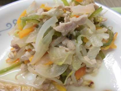 今日のメニューは、ごはん・厚揚げと野菜のみそ炒め・はなまるスープ・牛乳でした。今日のみそ炒めは、濃厚な味噌の風味が食材を包み、ごはんにぴったりの味わいでした。厚揚げが入っているので、ボリューム満点です。はなまるスープは、ナルトの色合いが美しく、スープも具材の味わいが混ざり合っておいしかったです。