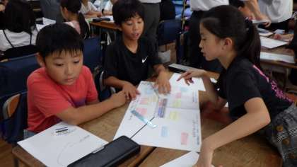ワークシートに色分けしたり、ペアで伝え合ったり、全体で共有したり、動画を取り入れたりなど、様々な学びの形態を工夫しながら、子どもたちの集中力を切らさないようにすすめていました。