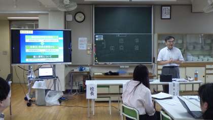 本日2時間目、区教委のアドバイザーの瀬古先生が来てくださり、1年3組岩田教諭が初任者研修の一環である研究授業を行いました。
