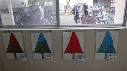 豊小の誇り ヒマラヤスギをあいさつの花でいっぱいに!!