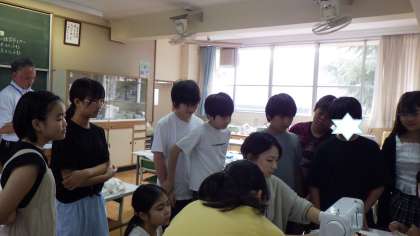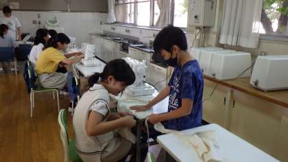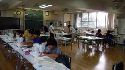 まず、教員が指導しやすい場の設定がされていました。ミシンの学習は、どうしても、教員にヘルプの声が掛かりがちです。適宜声を掛けやすい環境づくりを工夫していました。