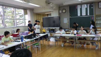 本日2時間目、区教委のアドバイザーの瀬古先生が来てくださり、1年3組岩田教諭が初任者研修の一環である研究授業を行いました。