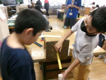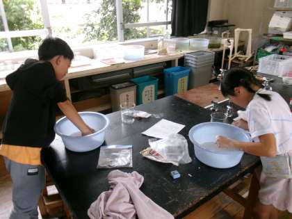 目の前で先生が入れ物から移し替え、子供たちが食い入るように見つめていました。