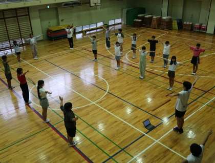 画像は、5年生の練習風景です。自分たで動きをより良くするように学び合っています。自分たちの行事を自分たちで盛り上げようと主体的に取り組んでいる5年生です。