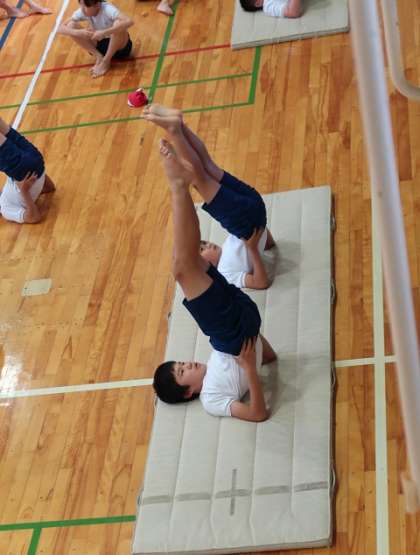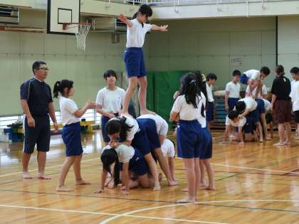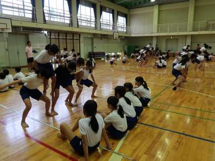小学校生活最後の体育的行事の練習が始まりました。今年の6年生は、コロナ禍で実施できなくなっていた組み立て体操にも取り組んでいます。ケガをしないように、準備運動や技の行い方や留意点などの指導を真剣に受けて安全に十分注意して行っています。子供たち自身で目標をもち最高の演技となるように主体的に取り組んでいます。