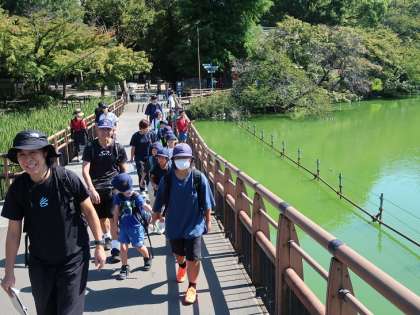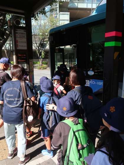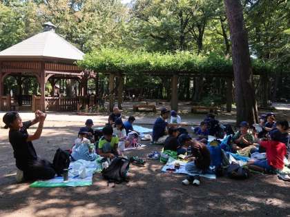 5組さんが遠足に行きました。大泉学園駅から吉祥寺駅まで路線バスに乗って行ってきました。バス料金の払い方や乗車のマナーなど体験的に学びました。晴天にめぐまれて、公園の緑と爽やかな風で気持ちの良い遠足となりました。