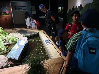 公園に到着して初めに井の頭自然文化園の水生物園を見学しました。コウノトリやタンチョウヅルなどの様々な鳥、魚やカメなどの水中に住む生き物を見学しました。ワニガメの大きな口にビックリしました。