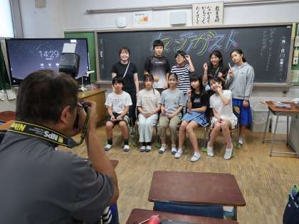 クラブ活動の写真撮影を6年生が行っていました。卒業アルバムに使われる写真です。6年生の小学校生活の思い出が詰まった卒業アルバムです。クラブごとに関係する物を持ったりポーズをしたりしていることもよい思い出です。