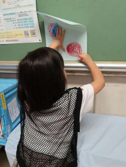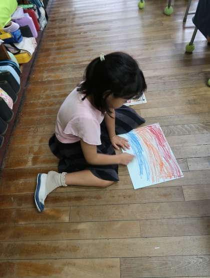 1年生が、身近になる様々な物の質感をこすりだして紙に移していました。映し出された質感から連想して絵を描くようです。どんな絵が完成するのか楽しみです。