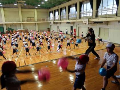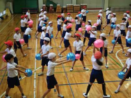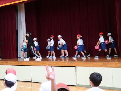 3年生は、ボールを使った表現演技を行うようです。ボールを使うことはみんな大好きです。ボールも弾み笑顔もはずみます。3年生も、先生だけでなく子供たち自身で教え合えるよにダンスリーダーがいます。みんなで力を合わせてよりよい演技に高めていきます。