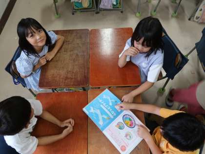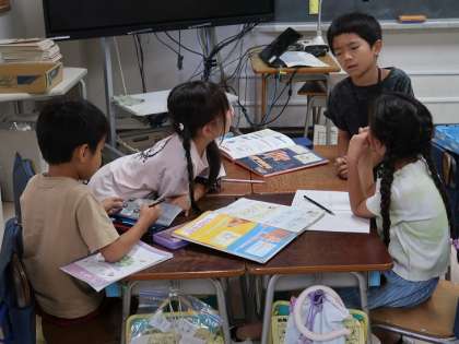 2年生が班で話し合っていました。テーマは自分達で作るおもちゃを何にするかを決めているようです。決まった班もありますが、意見が分かれて悩んでいる班もあります。悩みを解決する過程に大切な学びがあります。あきらめずに話し合う2年生が素敵です。