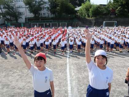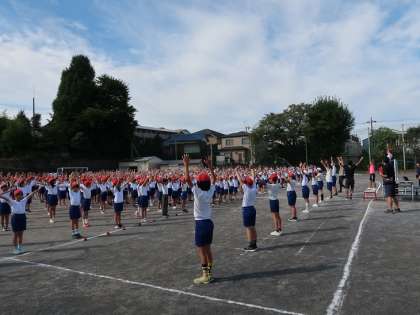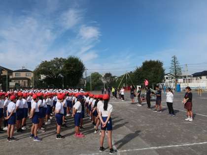 10月に入りいよいよ大泉スポーツフェスティバルの練習が本格的に始まりました。今日は、第一回目の全体練習が行われました。開会式と準備運動などの練習を行いました。子供たちが自分たちで作り上げる体育的行事です。紅白での競い合いも行います。するだけでなく支える活動も充実させ、学びの大いものとなるようにしてまいります。