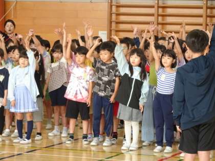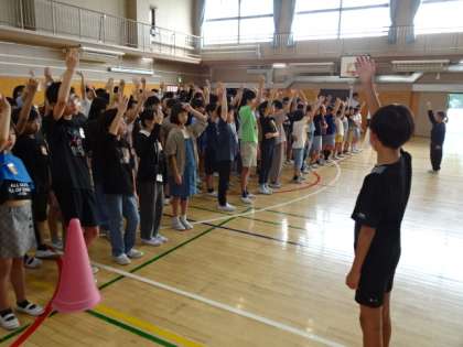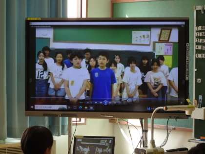 今月の課題曲は「世界に一つだけの花」です。音楽集会委員会の皆さんが演奏し、それに合わせて全校で合唱しました。サビの箇所の振り付けも皆でそろって踊ることができました。