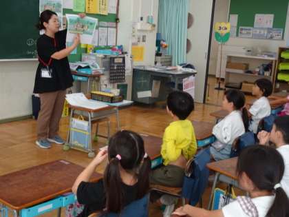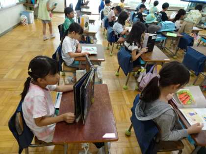 担任は、子供たちが興味・関心が湧くように導入に紙芝居を用います。