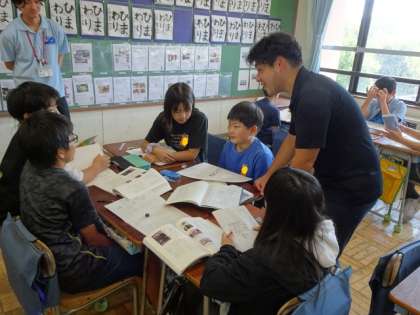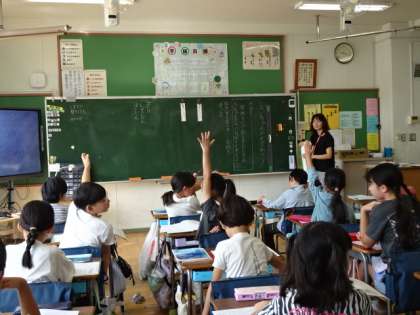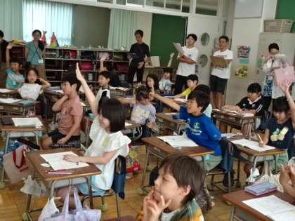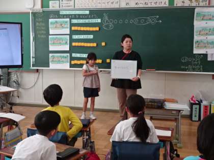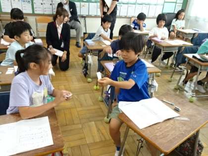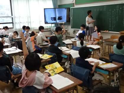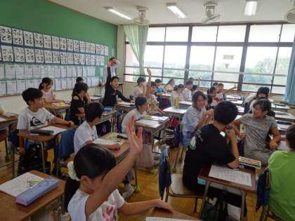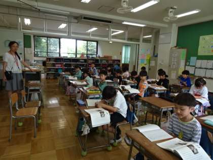 ねらいは「動物の獣医がいつ、どんな仕事をしているのか読み取り、想像を広げて考えること」です。子供たちは、段落ごとに、観点(いつ、とこで、誰が、なんだ…)に沿って読み進めていました。このクラスの担任は、国語の専門性がとても高く、子供が司会をしながら学習が進められていました。驚きました。