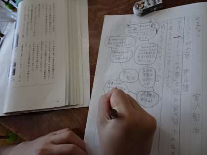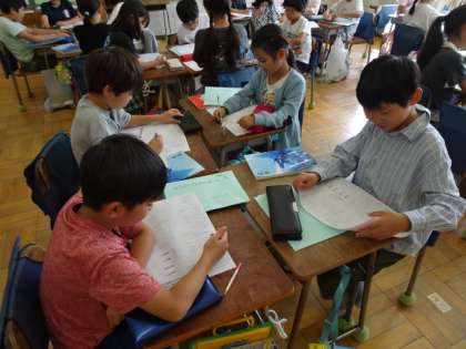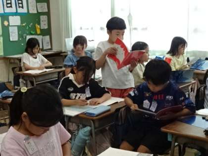 文中の「お父さんからならったかげおくりもできなくなった」から子供たちはさまざまな想いを抱いて発表していました。そして最後には、ちいちゃんになりきって日記を書いていました。とても多くの発言が出て活発な学習を参観することができ、嬉しく感じました。