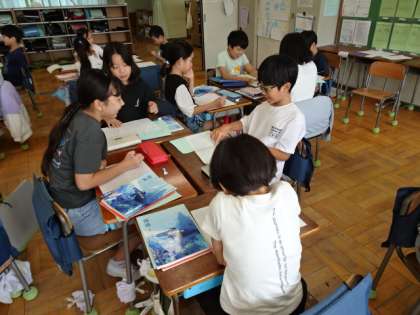 写真は、3年生国語「ちいちゃんのかげおくり」の学習場面です。