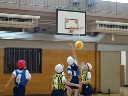 子供たちは、友達同士パスをつなぎながらゴールめがけてシュートを繰り返していました。友達同士励まし合ったり、作戦を練ったりする姿は、とても好感がもてました。また、どの子も運動する楽しさや喜びを味わうことのできる学習となっていました。