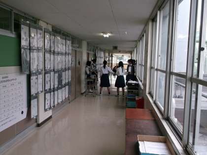 9/26(金)に実施される生徒会役員選挙の選挙戦がスタートしています。立候補者たちは夏休み前に立候補を決め、準備をしてきました。この写真は、朝のあいさつ運動を兼ねた、顔見せの様子です。