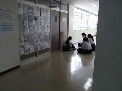 引き取り訓練の前に地震が起こったことを想定して、机の下に身(頭)を隠しました。その後、保護者の方の引き取りがありました。訓練の終盤、保護者の方を待っている間は学習をしたり担任の先生と語らったりと緊張の中に穏やかな時間も流れました。