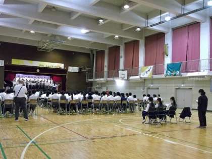 1学期の間に課題曲が提示され、自由曲の選択を行いました。指揮者、伴奏者は夏休み期間中練習に励みました。授業では歌唱方法、パートごとの音とりなどの基本的な指導を受けています。これからは、実行委員を中心に自分たちで合唱を完成させます!