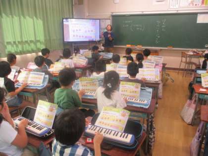 1年生が音楽で鍵盤ハーモニカの練習をしていました。鍵盤ハーモニカも音楽会できっと演奏されると思います。ドレミの初歩の段階ですが、上手に演奏していました。