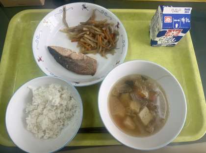 おれいの会(地域の方へ)![]() ![]() 水遊び![]() ![]() ![]() ![]() 10月2日(木)![]() ![]() 麦ご飯 牛乳 魚の黄金焼き おひたし きのこ汁 今日から読書月間が始まりました。 今日のブックメニューは、つるばら村のレストランという本にでてくる『きのこ汁』を作りました。 汁の中には、まいたけ・えのきだけ・しめじを入れました。きのこが苦手な子が食べやすいように油揚げや豆腐、野菜をいれて具だくさんの汁にしました。 9月30日(火)![]() ![]() ビビンバ 牛乳 青菜の中華スープ ビビンバは、野菜やお肉、卵をごはんによく混ぜながらいただきます。 お肉はトウバンジャンという韓国のみそとしょうゆなどの調味料を使って味付けしました。 炒り卵はきれいな黄色になるように仕上げました。 3年生 運動会表現練習![]() ![]() 9月29日(月)![]() ![]() ご飯 牛乳 豚肉のしょうが焼き 千草和え 呉汁 呉汁は大豆をすりつぶしたものをみそ汁にいれた日本各地に伝わる郷土料理です。 大豆のうまみが効いていてとてもまろやかな汁物です。大豆が苦手な人でも食べやすいです。 9月26日(金)![]() ![]() 麦ご飯 牛乳 イカとイモのチリソース 春雨の中華スープ 今日の給食のスープは中華スープです。そこに春雨を入れて作りました。春雨のモチモチした食感がとてもおいしいです。 9月25日(木)![]() ![]() 鶏飯 牛乳 焼きししゃも ごまみそ和え 鶏飯は鹿児島県の郷土料理です。 給食の鶏飯の具の中には、つぼ漬けを使用しました。 カリカリとした食感が楽しめました。 暑い日でも食べやすいメニューです。 9月24日(水)![]() ![]() 四川豆腐丼 牛乳 大豆もやしの中華サラダ ぶどう 今日の果物はぶどうです。ぶどうの種類は『巨峰』です。 今回は長野県のものが届きました。甘くてジュシーな味わいでした! 【4年生】ふれあい環境教室![]() ![]() ![]() ![]() 9月22日(月)![]() ![]() 黒砂糖パン 牛乳 米粉のラザニア風グラタン 野菜スープ 米粉のラザニア風グラタンのホワイトソースは、米粉と牛乳をよく混ぜて作りました。 ソースがなめらか仕上がりました。 9月19日(金)![]() ![]() ガパオライス 牛乳 フォースープ カルピスゼリー ガパオライスとフォースープは新メニューです。 ガパオライスの具はバジルの風味を効かせて作りました。 フォースープは、ナンプラーを使って作りました。ナンプラーの味は独特なのでしっかり味見をしながら子供たちが食べれるように調節して作りました。 9月18日(木)![]() ![]() ![]() ![]() スパゲティラタトゥイユ 牛乳 マセドニアンサラダ ブルーベリーマフィン スパゲティラタトゥイユには、夏野菜のなすとズッキーニを使用しました。 ブルーベリーマフィンに使用したブルーベリーはブルーベリー発祥の地である小平市のものです。マフィンはふわふわに仕上がるように作りました。 9月17日(水)![]() ![]() 麦ご飯 牛乳 すきやき風煮 じゃこサラダ 9月16日(火)![]() ![]() 麦ご飯 牛乳 鮭の焼きづけ じゃがいもの金平 のっぺい汁 9月12日(金)![]() ![]() 枝豆チャーハン 牛乳 肉団子スープ パリパリサラダ 今日は『パリパリサラダ』についてです。 パリパリサラダは、油で揚げたワンタンの皮を野菜にのせて食べます。ドレッシングは、ごま油やしょうゆなどの調味料を使って仕上げました。パリパリとした食感を楽しめるサラダです。 9月11日(木)![]() ![]() ツナじゃがトースト 牛乳 ミネストローネ コーンサラダ 今日のツナじゃがトーストは、蒸したじゃがいもにたまねぎ、マヨネーズ、ツナを合わせて食パンの上にのせてオーブンで焼いて作りました! 今日は約15キロのじゃがいもを使って作っています。 9月10日(水)![]() ![]() 焼肉丼 牛乳 ひじきのピリっとサラダ 梨 今日の果物は梨です! 「豊水」という種類の梨が学校に届きました。豊水は、食感がシャリシャリしていてさっぱりとした甘さが特徴です。 梨には果糖などが多く含まれているため疲労回復の効果があります! 9月9日(火)![]() ![]() ![]() ![]() 麦ご飯 牛乳 菊花しゅうまい 野菜の辛し和え みそ汁 9月9日は『重陽の節句』です。 今日の給食は重陽の節句に合わせた献立です。 菊花しゅうまいは、菊の花に見立てて作りました! 9月8日(月)![]() ![]() コーンピラフ 牛乳 さばのカレーグリル ABCスープ さばのカレーグリルは、魚にカレー粉、ヨーグルト、こしょうなどを漬け込みオーブンで焼きました。皮の部分がカリっと仕上がりおいしく出来上がりました! カレー粉には、いろいろなスパイスが含まれていて食欲を上げる効果や疲労回復の効果があります。暑い日にぴったりな香辛料です。 |