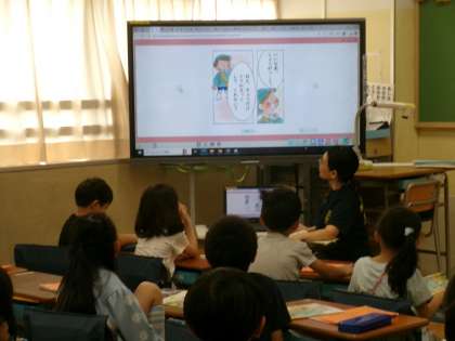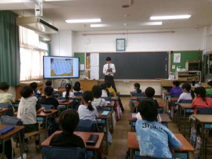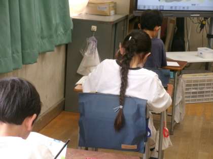 ローマ字の表記について学習したあと、ローマ字入力との違いについて確認しました。その後はタイピングアプリを使ってタイピングの練習です。みんな集中して取組んでいるので、タイピングのキーボードの音だけが聞こえてきます。