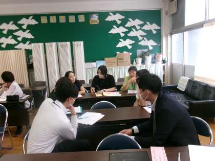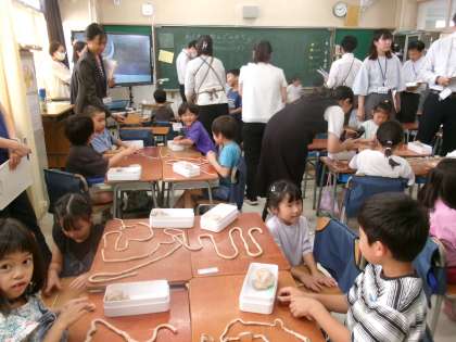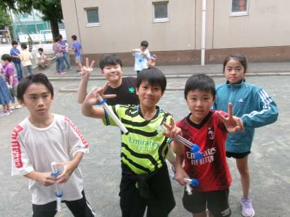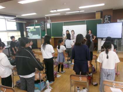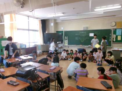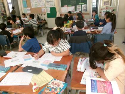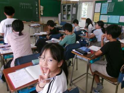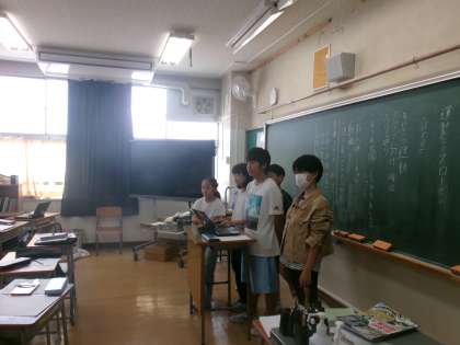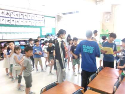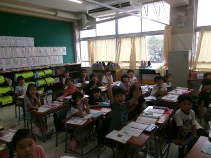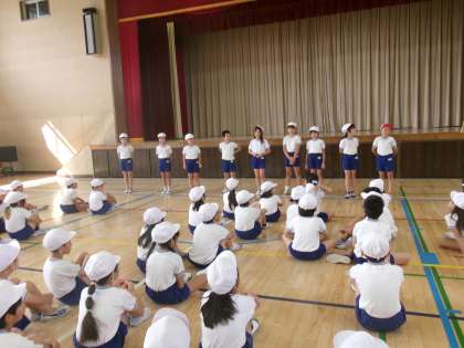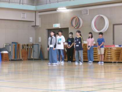 10月6日(月)全校朝会![]() ![]() 体育館で行いました。 全校児童が一堂に会する 重要なことですね。全校に一斉に話をしますし、内容も共有できますので。 〇5年生の岩井移動教室の紹介 〇3年生の消防写生会の表彰 〇3年生以上の算数の先生の紹介 〇インターネット、タブレットの使い方の確認 〇10月の生活目標について 等の話がありました。 トップページ 10月6日(月)全校朝会講話、全校朝会講話使用スライドも併せて御覧ください。 10月3日(金)6年生国語 みんなで楽しく過ごすために![]() ![]() ![]() ![]() ![]() ![]() ○クラブ ○委員会 何でも、6年生は長になり、期待もかけられています。 プレッシャーもありますよね。 でも、それが最高学年! 他の学年の子よりも経験があり、開一小のことをよく知っているからこそです。 「自分たちが行っている活動をよりよくし、楽しく過ごすために」というテーマで話合い活動をしています。 10月3日(金)1年生算数 どちらが多い?![]() ![]() ![]() ![]() ![]() ![]() 容器の大きさが違うと、例えば入る水の量はどちらが多いかは分かりません。 そういうときには、どうすればよいのでしょうか。 算数も具体物を見るのが一番大事! 目の前で先生が入れ物から移し替え、子供たちが食い入るように見つめていました。 比べ方、分かりましたね。 「こちらの方が!多い。」 10月3日(金)2年生 運動会の練習![]() ![]() ![]() ![]() ![]() ![]() 昨年度は、初めての運動会でダンスを力いっぱい踊った子供たち 今年度は、道具を持ち、また昨年度とは違う見どころがたくさんありそうです! 難しい振り付けもあるでしょう。 でも、まだ運動会までは時間があります。 焦らず、一つ一つやっていきましょう。 10月3日(金)5年生算数 分数と小数の関係![]() ![]() ![]() ![]() ![]() ![]() 2/9(9分の2) をそれぞれ小数で表しましょうという問題です。 分数と小数の関係を考えています。 上の方は、割とすぐに小数にできそうですが、 下の方は...。 難しそうです。 二週間前まで岩井に行っていた5年生ですが、 日常の学校生活でも頑張っていますね! 10月3日(金)4年生理科 とじこめた空気と水![]() ![]() ![]() ![]() ![]() ![]() 理科は、直接体験が何より説得力をもちますからね。 水を水道からくんできて、道具に入れるのでしょうか。 予想が合っているか、確かめてみます。 もしかしたら!?予想外の結果も、見られるかもしれませんよ! 10月3日(金)3年生 運動会の練習![]() ![]() ![]() ![]() ![]() ![]() 大体似たようなタイムの人と一緒に走ります。 初めての曲走路となりますが、駆け抜けましょう。 団体演技のダンスの練習にも熱が入ります! 本番では、3年生らしく元気いっぱいそして、力強さや素早さなども表現できるよう、練習を重ねています。 ダンスリーダーがいて、いち早くダンスを覚えているので、とても頼もしいです! ダンスリーダーではない子も、一生懸命覚えようと努力しているのもよいですね! 10月2日(木)運動会選抜リレー顔合わせ![]() ![]() ![]() ![]() ![]() ![]() 昼休みに選手と補欠の子たちが集まりました。 「選手としての自覚をもち、リレー選手になりたくてもなれなかった子の分まで頑張ること」 「バトンパスをしっかりとつなぐこと」 「練習から本番まで主体的に動くこと」 などを目標に、これから取り組んでいきます。 9月29日(月)委員会活動![]() ![]() ![]() ![]() ![]() ![]() 2学期が始まり、一か月 よくできているところと課題・改善点も見付かったことでしょう。 そのため、各委員会の集合する教室で、6年生の委員長を中心に、活発に進めていました。 「学校全体」という視点で働いてくれている5・6年生 委員会活動を更に活発にし、学校全体をよりよくしてほしいと思います。 高学年の皆さん、期待しています! 9月26日(金)マザーグースの皆様の読み聞かせ![]() ![]() ![]() ![]() ![]() ![]() 図書委員会の図書集会を皮切りに、全校で「読書」への興味・関心が少しずつ出てきて、盛り上がっているのではないでしょうか。 そして、どの旬間恒例のPTAマザーグースの皆様の読み聞かせもありました。 いつ聞いても、お話の世界にぱっと引き込んでくださる雰囲気 抑揚の付いた読み方 そして選んでくださる本も、子供たちがぐっと引き付く内容で、素晴らしいです。 たくさんの本を紹介していただきました! 改めて、マザーグースの皆様が読んでくれた本を読みたいな!と思っている子もいるかもしれません。 9月26日(金)たてわり班2![]() ![]() ![]() ![]() ![]() ![]() そして、自分たちでその日の活動を振り返り、成果と課題をまとめ、また担当の先生の所に報告に来ます。 こうやって事前準備をしっかりしてくれる6年生がいるからこそ、当日スムーズに運営できるのですよね。 ありがとう!6年生 9月26日(金)たてわり班![]() ![]() ![]() ![]() ![]() ![]() 校庭もよく晴れて、楽しく活動できましたね。 室内の班も、それぞれ工夫して楽しく遊べました。 6年生のリーダーシップが本当に素晴らしい。 9月25日(木)3年生国語 ポスターを読もう![]() ![]() ![]() ![]() ![]() ![]() ずい