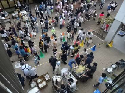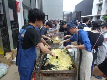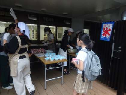参加したお友達が楽しみにしていたのは、模擬店です。4月に行われた照姫まつりで焼きそばを販売しましたが、その時の売り上げで参加者にふるまわれました。やきそば、ポップコーン、かき氷です。やきそばは、先生方も調理を担当しました。私も照姫まつりに続いて調理しましたが、つくりながらとても美味しそうで食べたくなってしまいます。