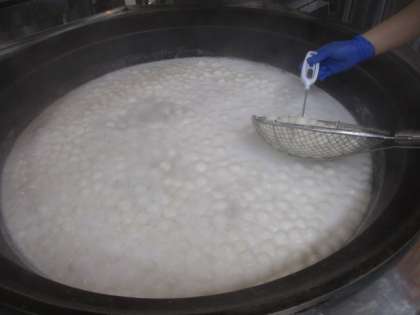 月見団子は、冷凍白玉を茹でてカップに入れ、きな粉を1つ1つかけました。